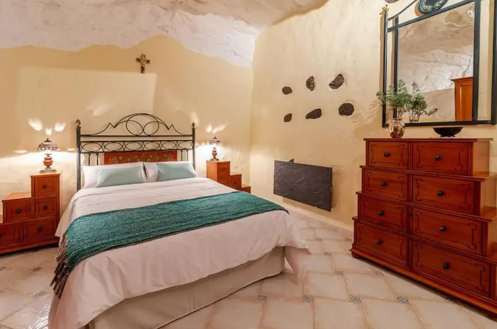 More information about Villa AguacateCasa cueva El Balcón del Cortijo offers a peaceful retreat nestled in nature, featuring a spacious terrace with panoramic views of the Barranco del Cortijo. The fully equipped house includes modern kitchen appliances such as an induction stove, oven, microwave, and refrigerator-freezer combination. Two bedrooms provide comfortable sleeping arrangements with high-quality bedding.